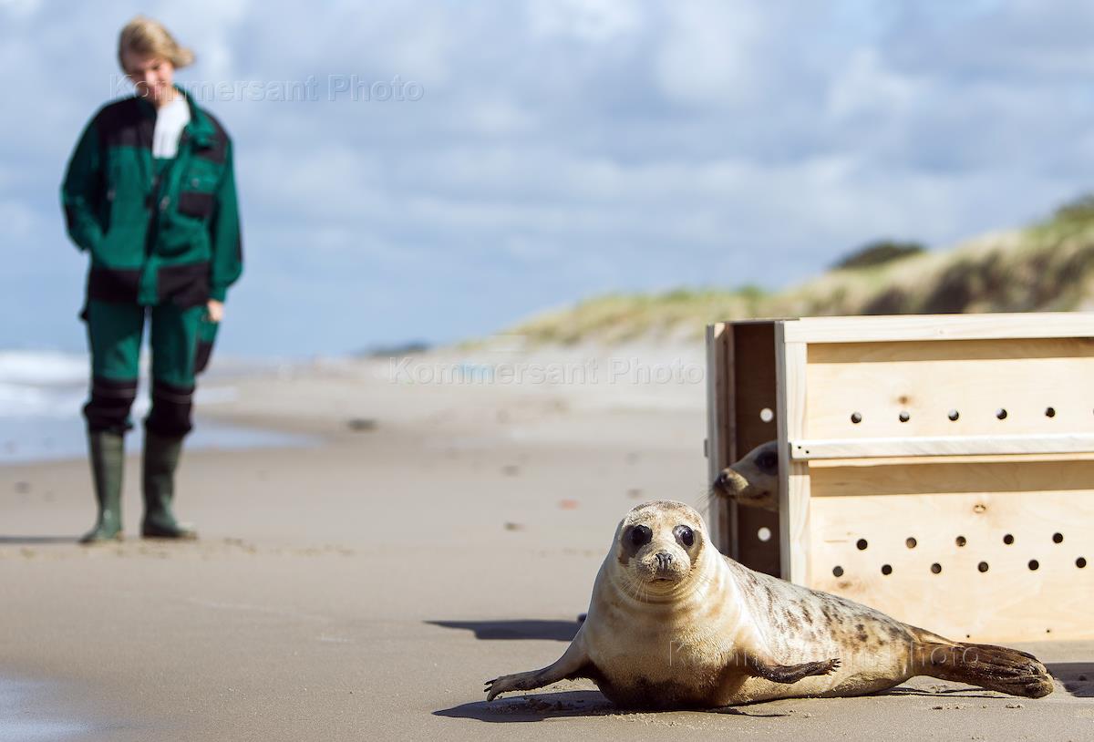 Куршская коса. Специалисты калининградского зоопрака выпустили в Балтийское море двух тюленей, рожденных в зоопарке.