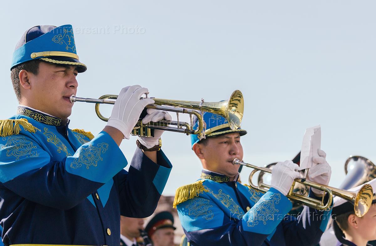VI Международный фестиваль духовых оркестров "Фанфары Казани" на территории Казанского кремля. Участники фестиваля из Казахстана.