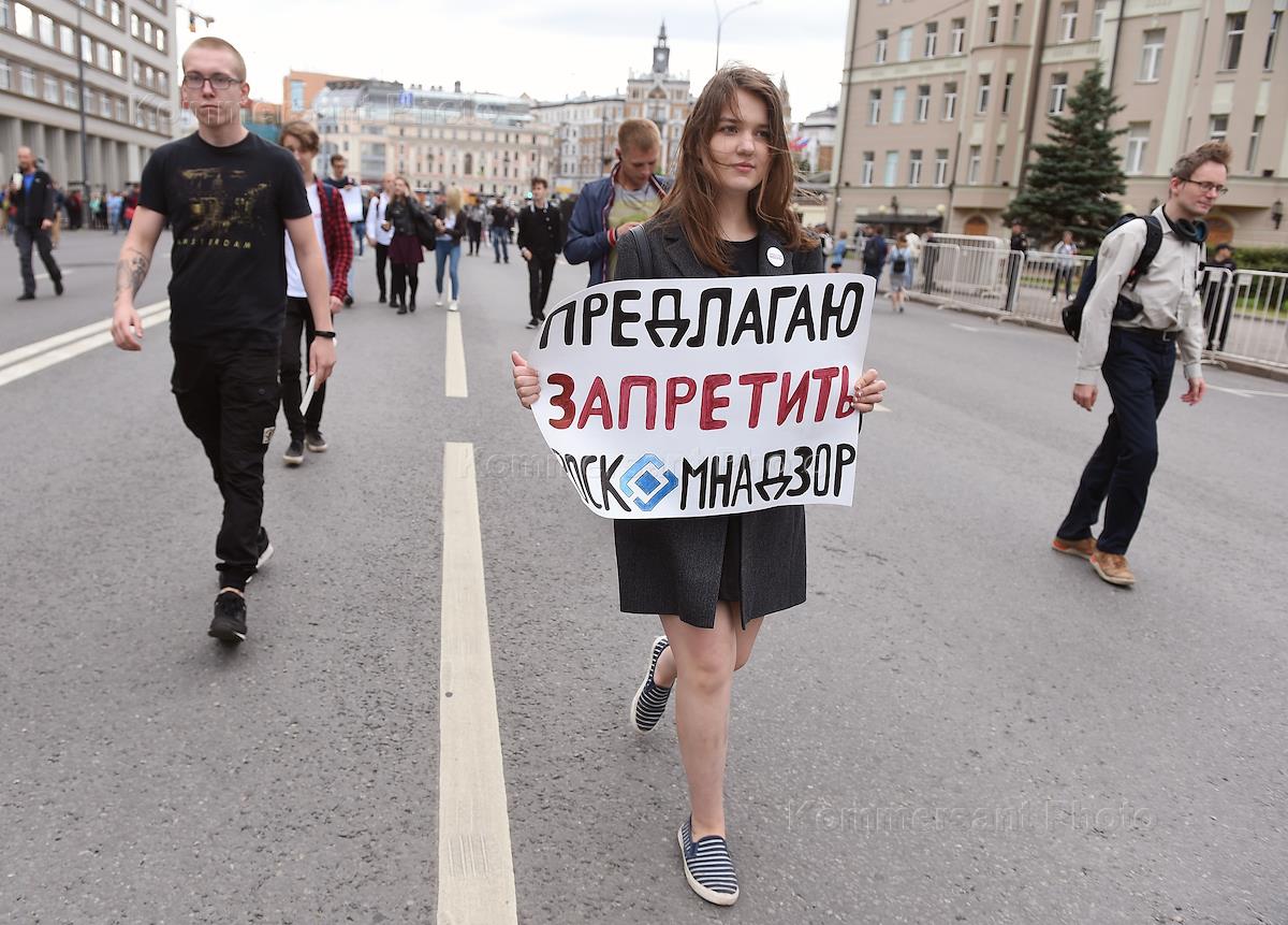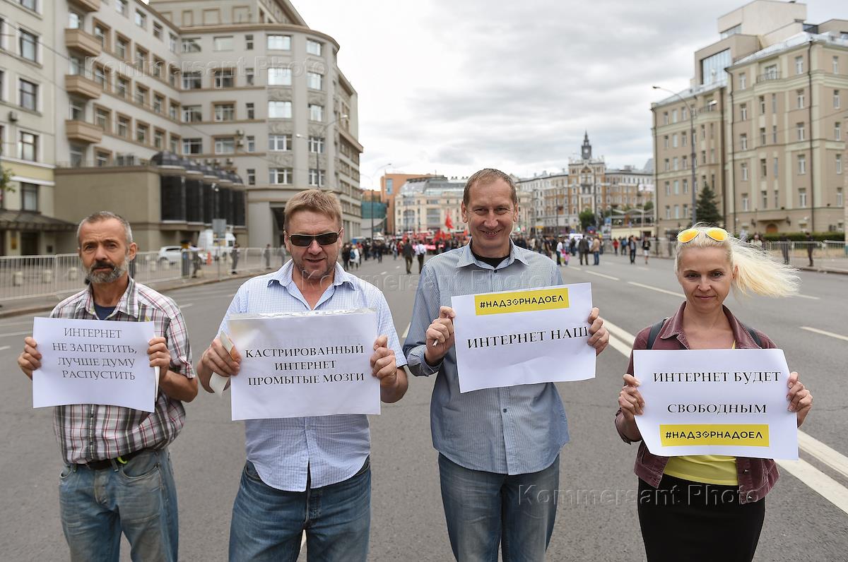 Участники митинга "За свободный интернет" на проспекте Академика Сахарова.