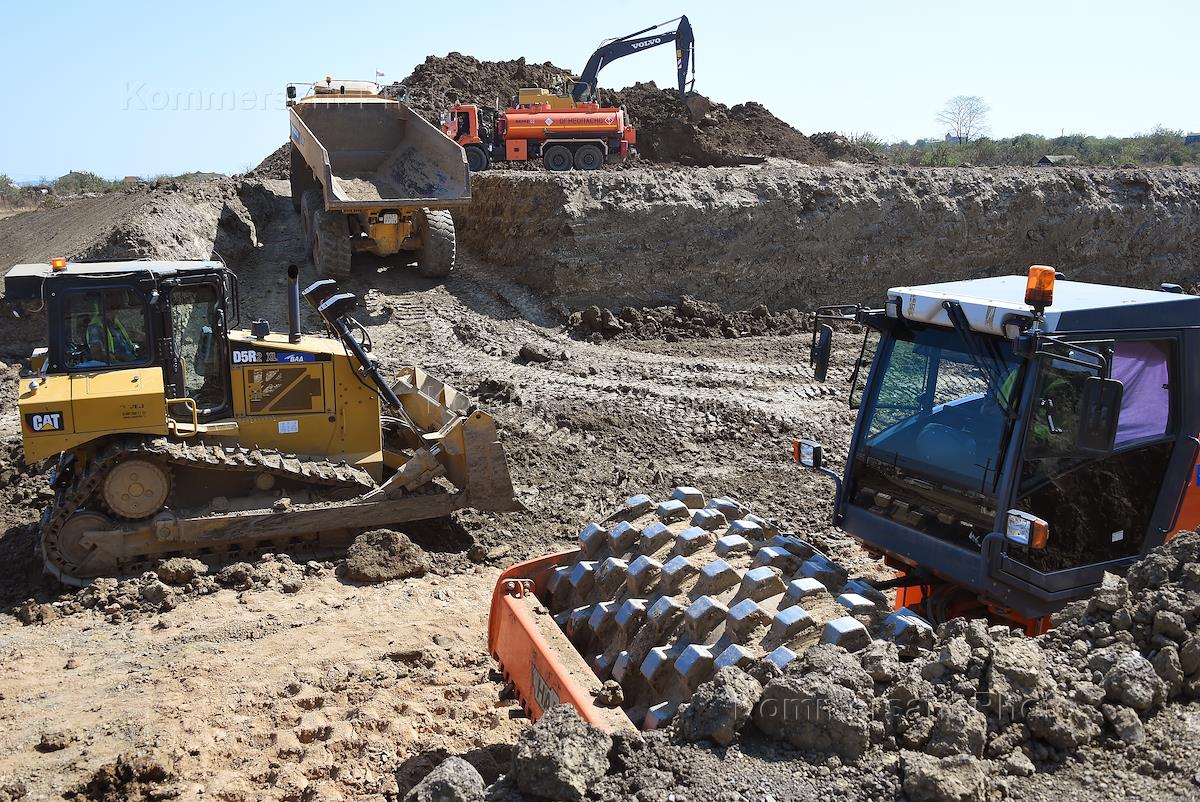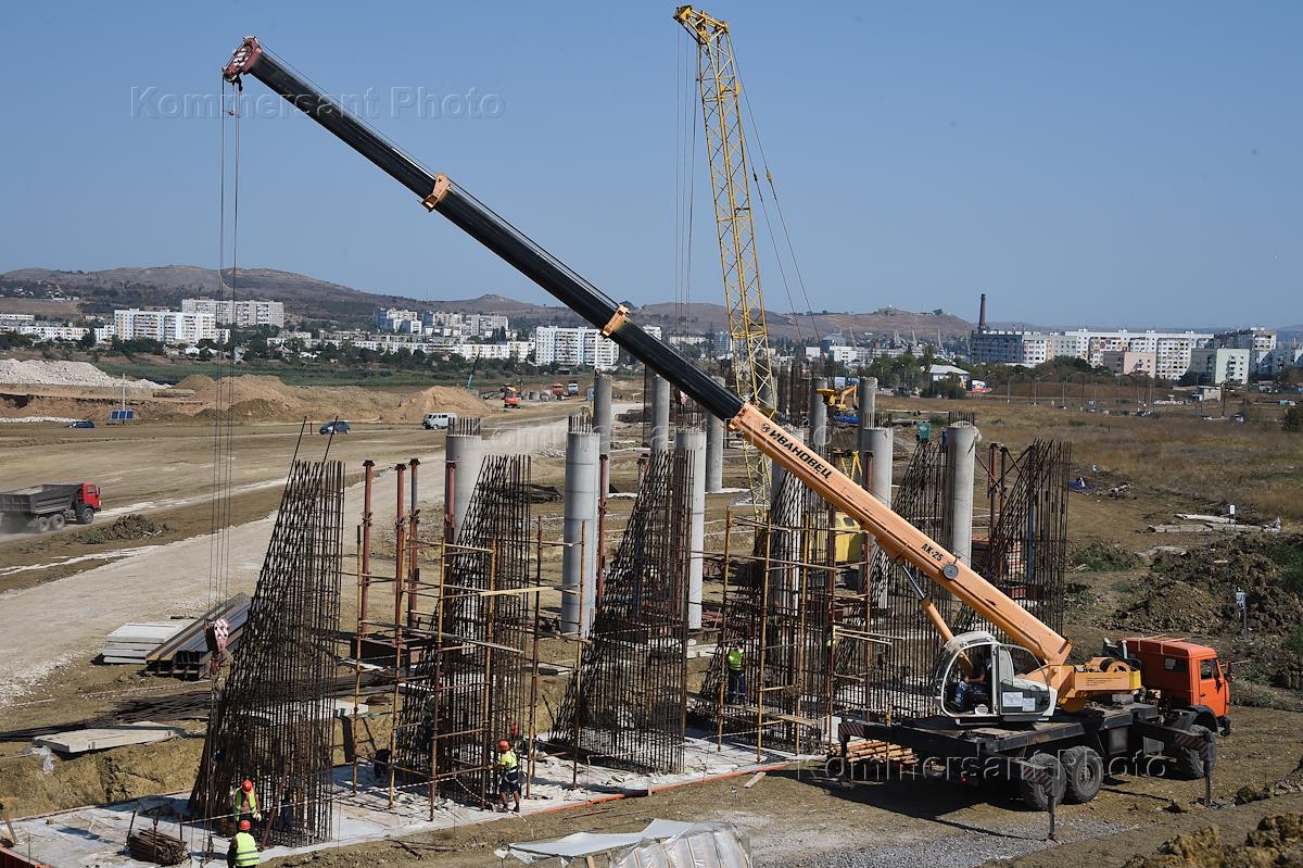 Строительство автомобильного подъезда к мосту через Керченский пролив со стороны полуострова в Керчи.