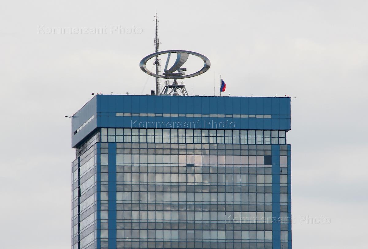 Виды Тольятти. Здание генеральной дирекции ПАО "АвтоВАЗ" (Волжский автомобильный завод). Эмблема компании - ладья на крыше здания.