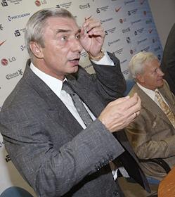 Двукратный чемпион СССР по футболу, заслуженный мастер спорта и заслуженный тренер СССР Константин Бесков на пресс-конференции по результатам заседания исполкома Российского футбольного союза. Пресс-конференция прошла в здании Олимпийского комитета России.