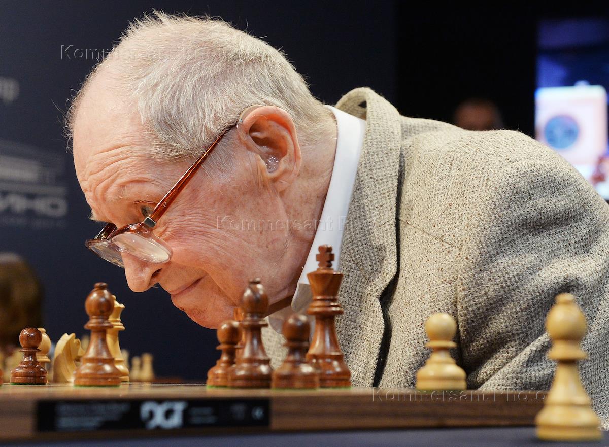 Благотворительный шахматный поединок прошел в телецентре "Останкино". Шахматист Борис Спасский во время мероприятия.