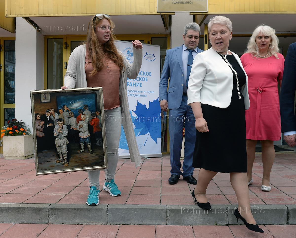 Общероссийское родительское собрание прошло в государственном общеобразовательном учреждение города Москвы "Центр образования № 548 "Царицыно", широко известное как "Школа Рачевского". Министр образования и науки России Ольга Васильева (вторая справа) после окончания собрания.
