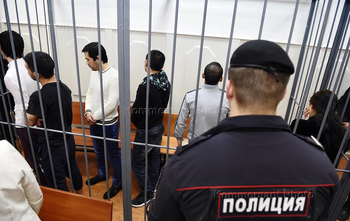 Рассмотрение ходатайства следственных органов о продлении срока содержания под стражей на три месяца в отношении обвиняемых по делу о теракте в метро Санкт-Петербурга состоялось в Басманном районном суде. Обвиняемые во время заседания суда.