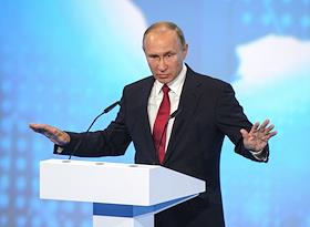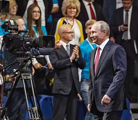 Рабочая поездка президента России Владимира Путина в Ярославскую область. Всероссийский форум профессиональной навигации "ПроеКТОриЯ" прошел в культурно-спортивном комплексе "Арена 2000". Президент России Владимир Путин во время всероссийского открытого урока "Россия, устремлённая в будущее" в рамках форума.