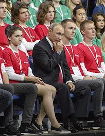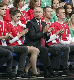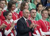 Рабочая поездка президента России Владимира Путина в Ярославскую область. Всероссийский форум профессиональной навигации "ПроеКТОриЯ" прошел в культурно-спортивном комплексе "Арена 2000". Участники форума на всероссийском открытом уроке "Россия, устремленная в будущее".