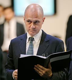 Рабочая поездка президента России Владимира Путина в Ярославскую область. Всероссийский форум профессиональной навигации "ПроеКТОриЯ" прошел в культурно-спортивном комплексе "Арена 2000". Генеральный директор ОАО "Концерн ПВО "Алмаз – Антей" Ян Новиков во время форума.