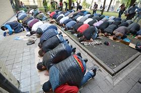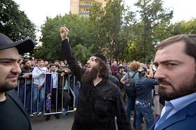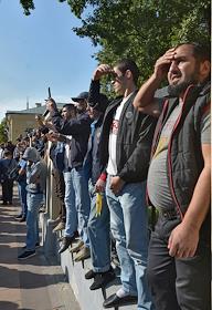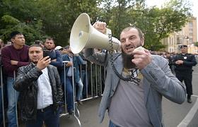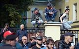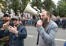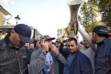 The rally against the persecution of Myanmar Muslims from the ethnic group Rohinja was held near the embassy of Myanmar in Moscow. The participants during the spontaneous rally.