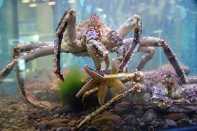 Жанровая фотография. Дальневосточный краб и морская звезда в аквариуме.