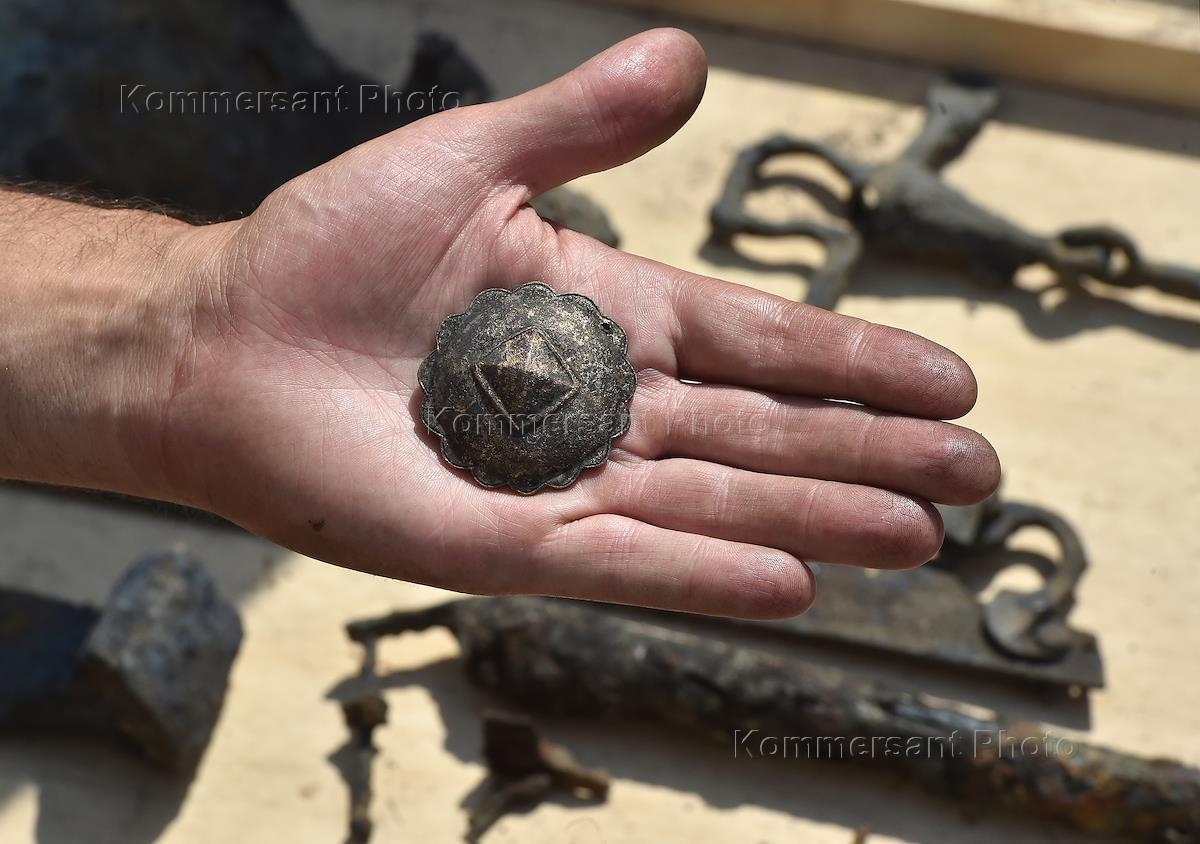 Археологические раскопки на Биржевой площади. Артефакты, найденные археологами во время ручной расчистки.