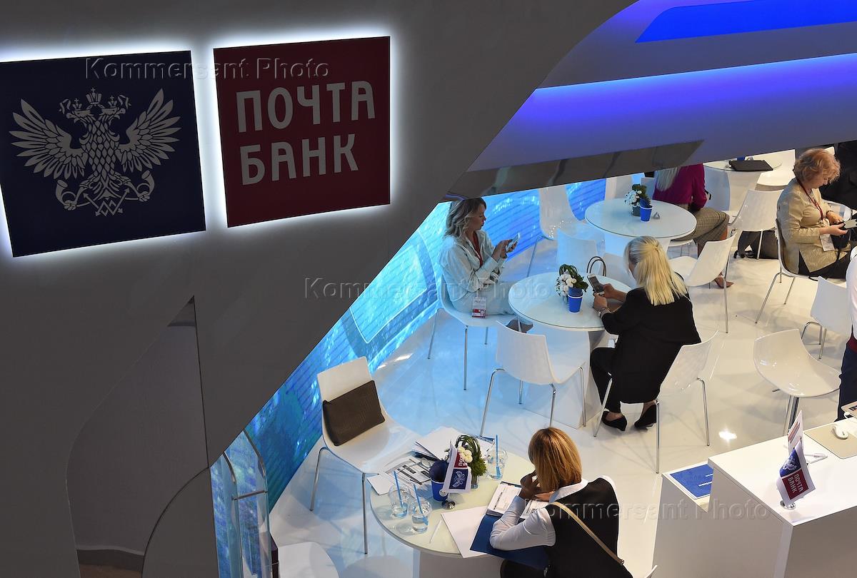 Восточный экономический форум (ВЭФ). Первый день. Логотип "Почта банк" на стене стенда во время работы форума.