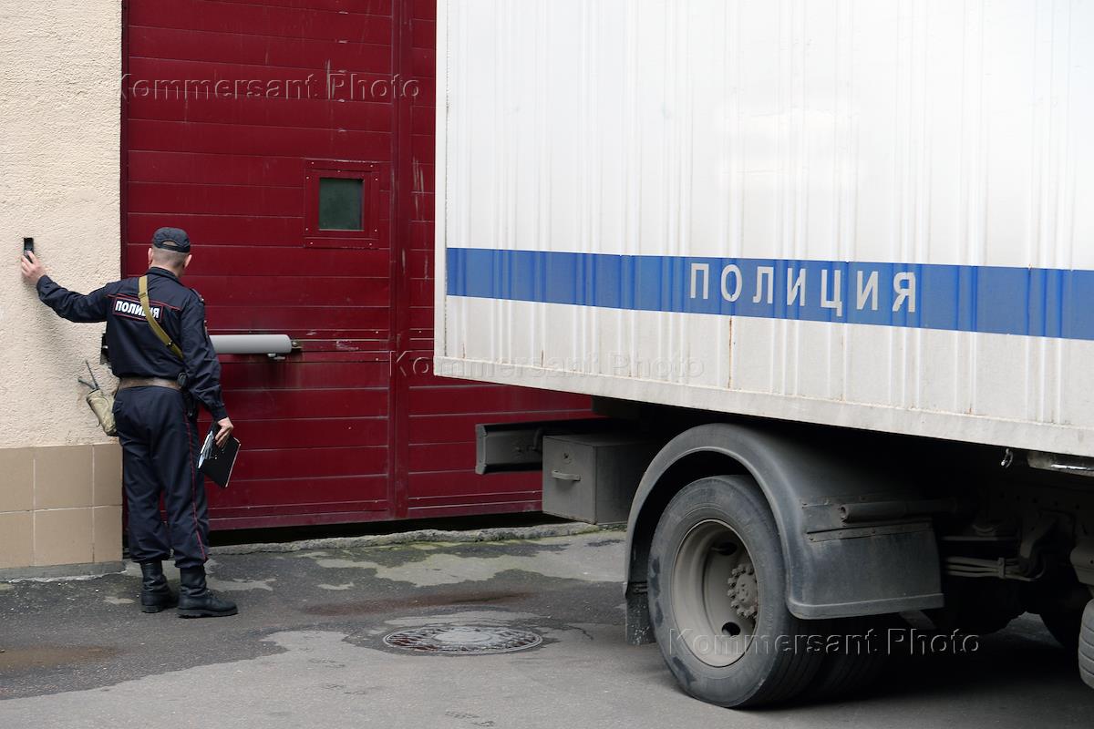 Жанровая фотография. Специальный автомобиль полиции для перевозки подозреваемых и обвиняемых перед воротами Дорогомиловского районного суда.