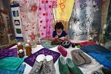 Фестиваль традиционной культуры "O‘zbegim" прошел на улице Сайилгох. Участник Ярмарки ремесленников продает национальные халаты и тюбетейки.