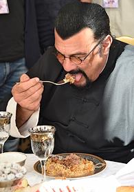 Фестиваль традиционной культуры "O‘zbegim" прошел на улице Сайилгох. Актер Стивен Сигал во время дегустации национальной узбекской кухни во время фестиваля.