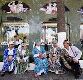 Фестиваль традиционной культуры "O‘zbegim" прошел на улице Сайилгох. Участники концертной программы в национальных костюмах перед выступлением.