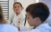 Открытие интерактивного социально-образовательного проекта «Азбука профессий» прошло на площади имени Ленина. Дети во время ознакомления с профессией медика. Дети во время ознакомления с профессией военного.
