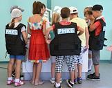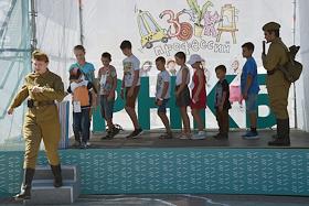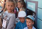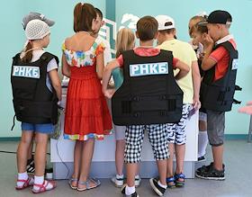 Открытие интерактивного социально-образовательного проекта «Азбука профессий» прошло на площади имени Ленина. Дети в бронежилетах с надписью РНКБ (Российский национальный коммерческий банк).