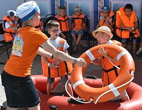 Открытие интерактивного социально-образовательного проекта «Азбука профессий» прошло на площади имени Ленина. Дети во время ознакомления с профессией спасателя.