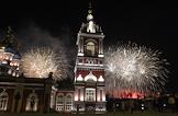 Праздничный фейерверк в парке "Зарядое" после церемонии открытия.