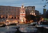 Вид из парка "Зарядье" на церковь великомученика Георгия (она же Покровская) на улице Варварка.