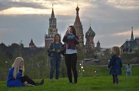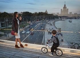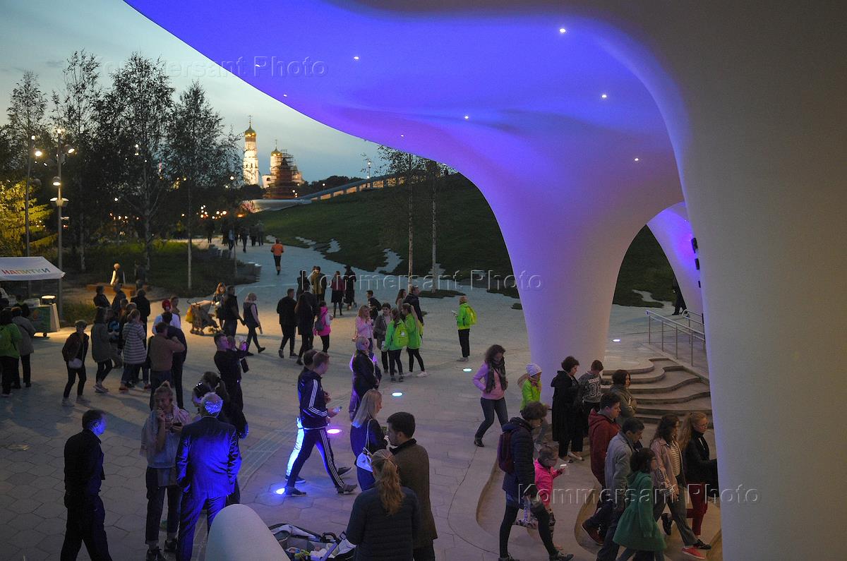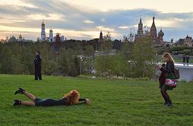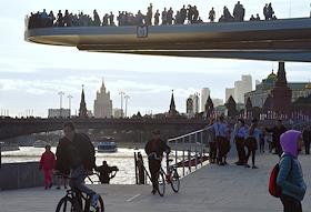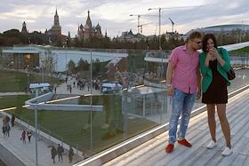 Виды Москвы. Отдыхающие в парке "Зарядье".