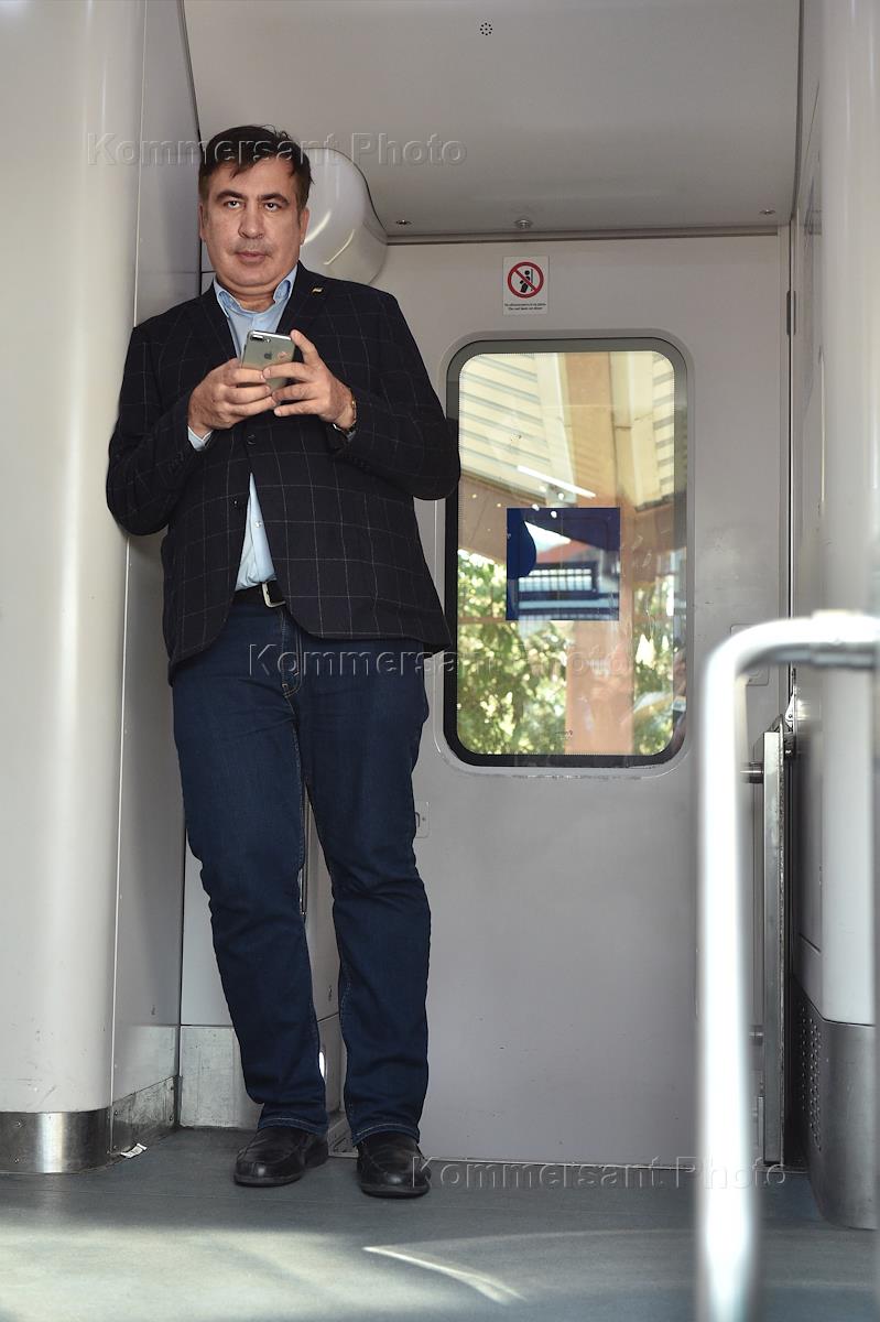 Бывший глава Одесской области Михаил Саакашвили во время перехода польско-украинской границы через пункт пропуска Краковец-Корчова на железнодорожном вокзале польского города Перемышль.