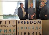 Акция в защиту художественного руководителя "Гоголь-центра" Кирилла Серебренникова прошла в парижском национальном театре Шайо. Деятели французской культуры во время акции.