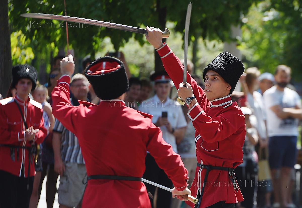 Церемония "Час славы Кубани". Церемония развода почетного караула Кубанского казачьего войска.