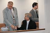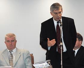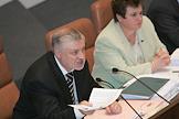 Член комитета Совета Федерации по делам федерации, Федеративному договору и региональной политике Рамазан Абдулатипов (сидит) и представитель в Совете Федерации (СФ) России от Саратовской областной Думы, председатель Комитета СФ по промышленной политике Валентин Завадников (слева) на очередном заседании СФ.