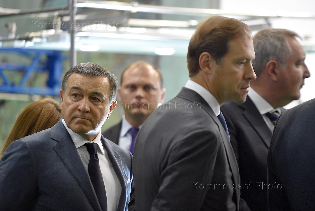 Выставка "Импортозамещение" прошла в Крокус-экспо. Слева направо: президент Crocus Group Араз Агаларов, министр промышленности и торговли России Денис Мантуров и заместитель председателя Правительства России Дмитрий Рогозин во время выставки.