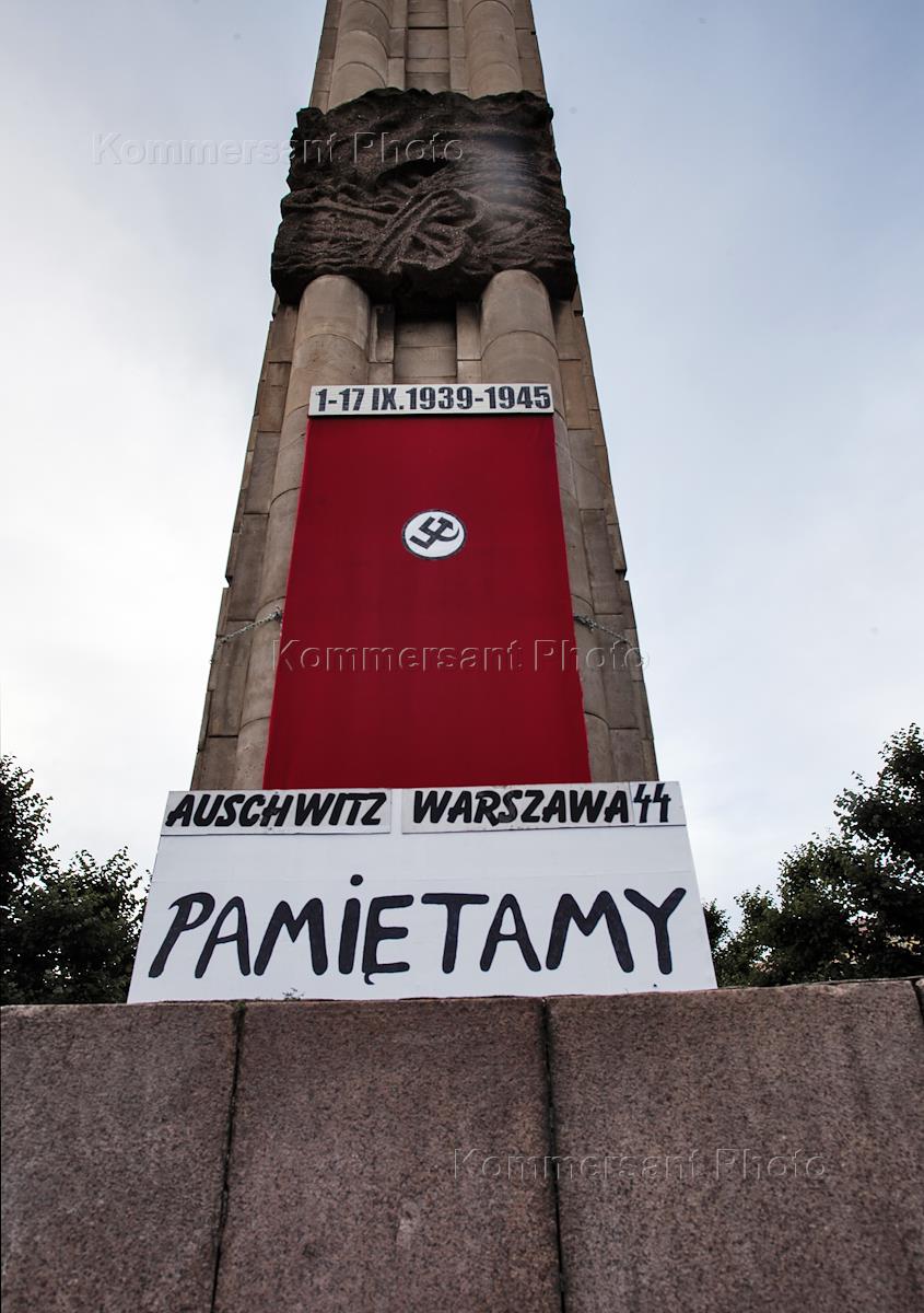 Памятник благодарности Красной Армии в городе Щецин. Попрошайки у памятника.