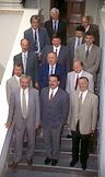 Глава банка "Менатеп" Михаил Ходорковский (второй справа) и президент "НК ЮКОС" Сергей Муравленко (слева, сидит) после принятия решения о приобретении банком "Менатеп" компании "НК ЮКОС".