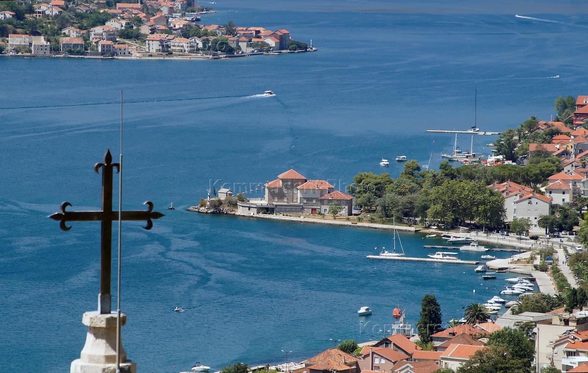 Виды города Котор. Туристы фотографируются на фоне Которского залива Адриатического моря.