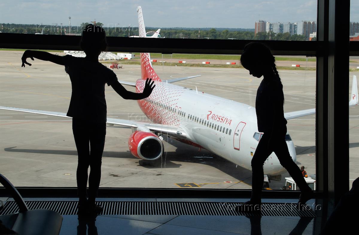 Жанровая фотография. Пассажиры после выхода из самолета авиакомпании "Россия".