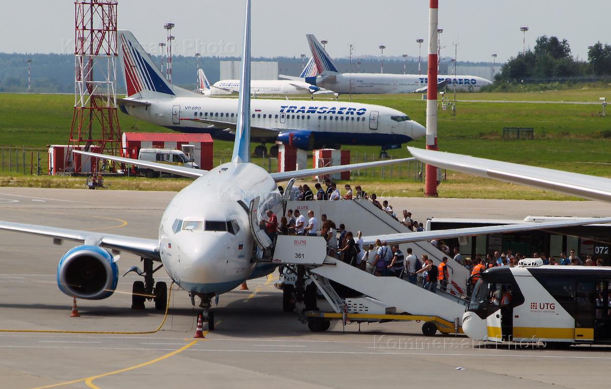 Жанровая фотография. Пассажиры после выхода из самолета авиакомпании "Россия".
