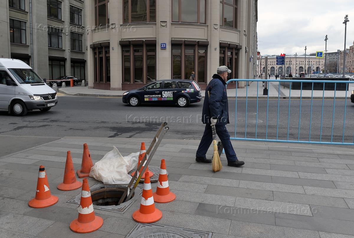 Виды Москвы. Троицкая башня Кремля. Дорожный знак "Въезд запрещен" ("кирпич").