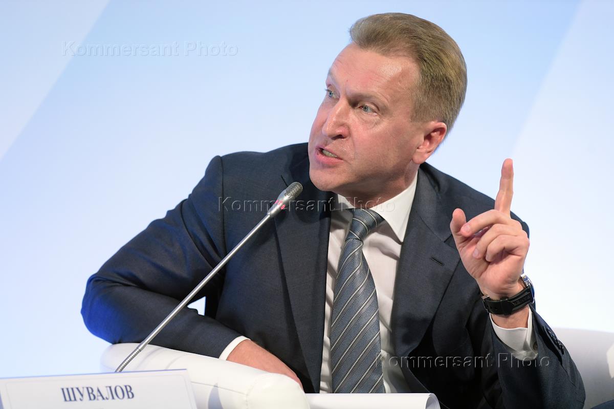Юбилейный форум Общероссийской общественной организации малого и среднего предпринимательства "Опора России". Пленарное заседание о необходимости комплексной политики акселерации малого бизнеса в России в рамках форума. Первый заместитель председателя правительства России Игорь Шувалов на форуме.