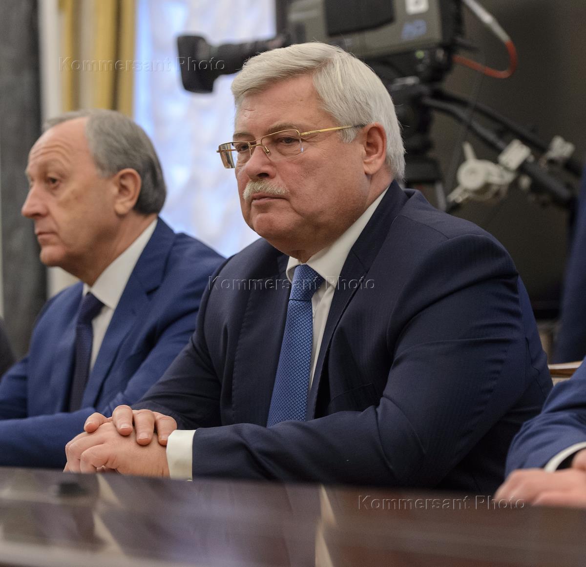 Встреча президента России Владимира Путина с главами регионов, которые были избраны в ходе Единого дня голосования 10 сентября 2017 года. Губернатор Саратовской области Валерий Радаев (слева) и губернатор Томской области Сергей Жвачкин (справа) во время встречи в Кремле.