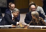Президент Украины Петр Порошенко (слева) и премьер-министр Великобритании Тереза Мэй (справа) во время заседания Совета безопасности ООН по миротворчеству на уровне глав делегаций в штаб-квартире ООН.