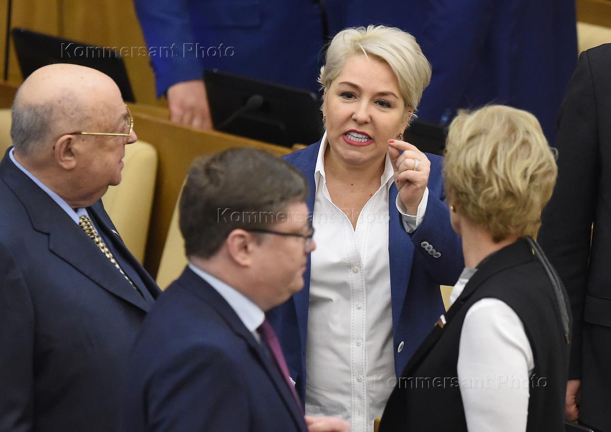 Пленарное заседание Государственной думы (ГД) России. Заместитель председателя комитета ГД России по развитию гражданского общества, вопросам общественных и религиозных объединений Наталья Костенко (слева) перед началом заседания.