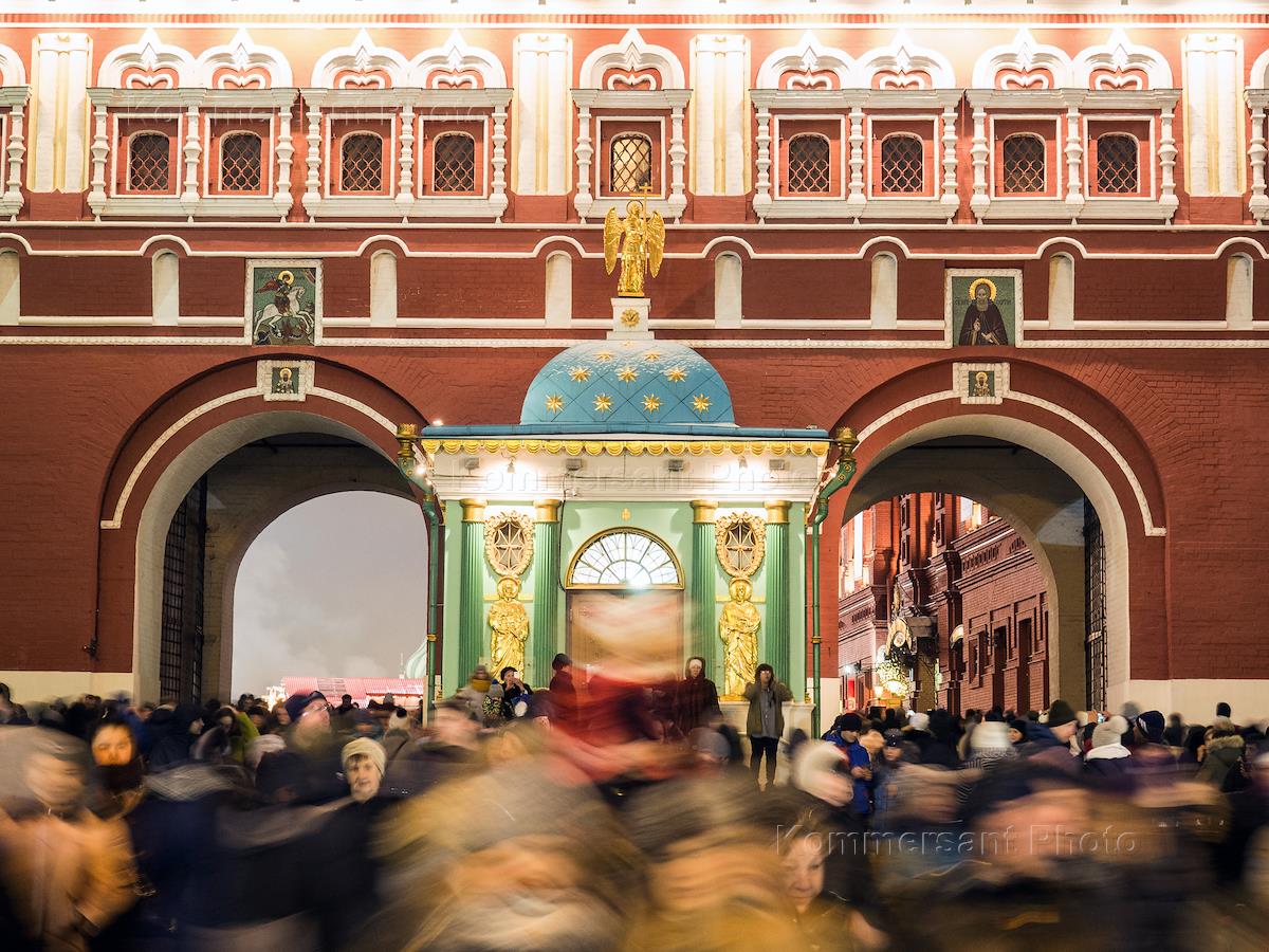 Виды Москвы. Новогоднее убранство города. Воскресенские (Иверские) ворота.