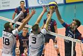 Чемпионат России по волейболу. 4-й тур Суперлиги. Матч между командами "Зенит" (Санкт-Петербург) и "Факел" (Новый Уренгой). Слева направо: игроки команды "Факел" Владимир Шишкин и Дмитрий Волков во время матча.
