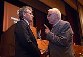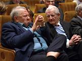 Выборы в президиум Российской академии наук (РАН) прошли в Большом зале РАН. Президент РАН Александр Сергеев (слева) во время выборов.