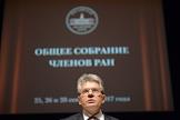 Выборы в президиум Российской академии наук (РАН) прошли в Большом зале РАН. Президент РАН Александр Сергеев во время выборов.