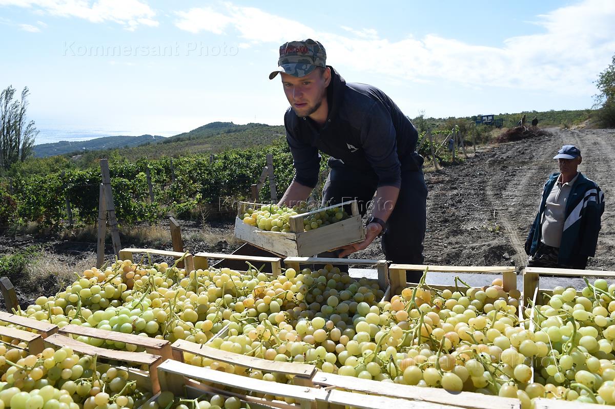 Сбор урожая винограда в виноградниках ФГУП "ПАО "Массандра".