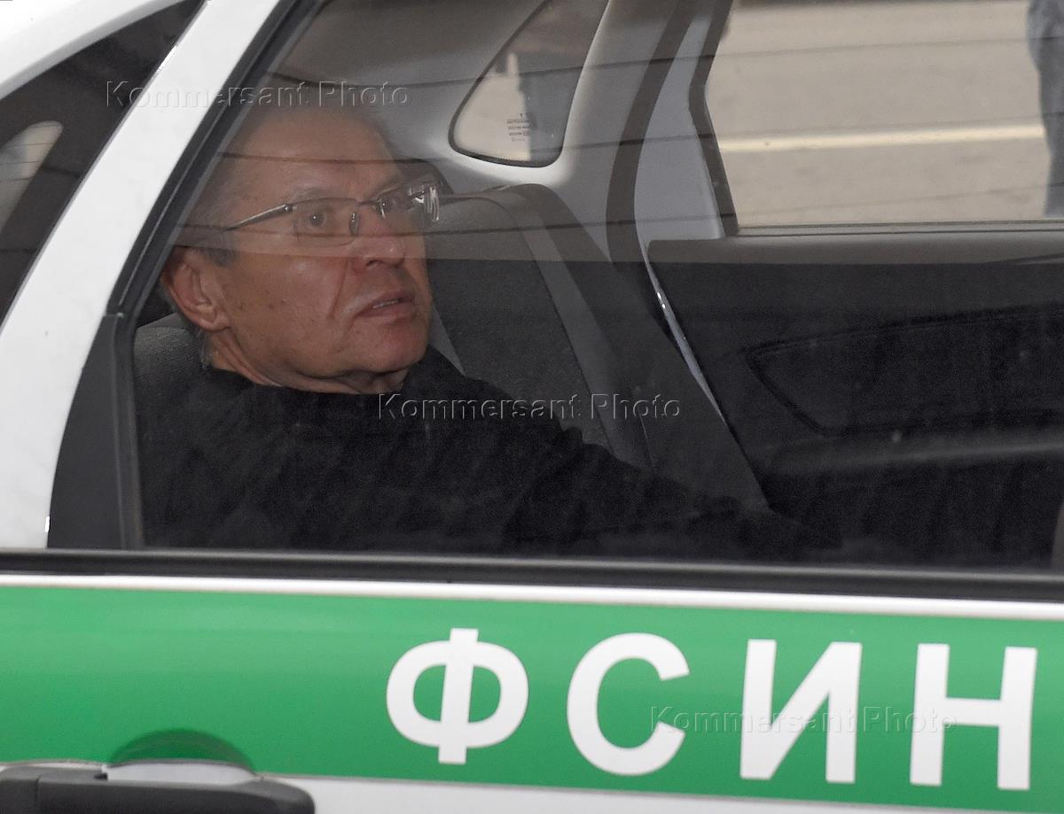 Бывший министр экономического развития России Алексей Улюкаев, обвиняемый в получении взятки в два миллиона долларов, после заседания Замоскворецкого районного суда.