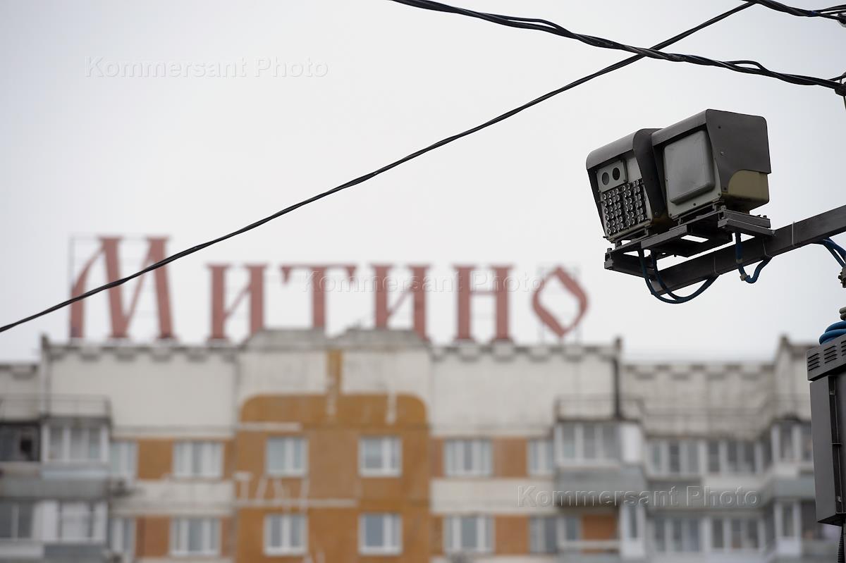 Камера фотовидеофиксации Центра организации дорожного движения (ЦОДД) над проезжей частью автодороги в районе Митино.