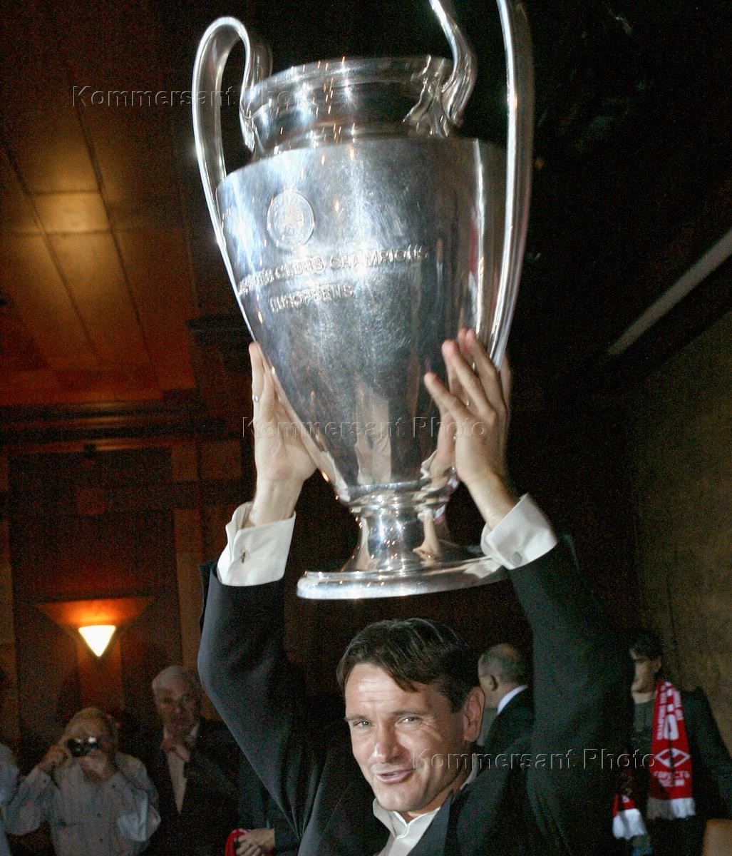 Футболист Дмитрий Аленичев во время презентации футбольным клубом "Спартак" кубка Лиги Чемпионов в России. Презентация прошла в казино "Golden Palace".