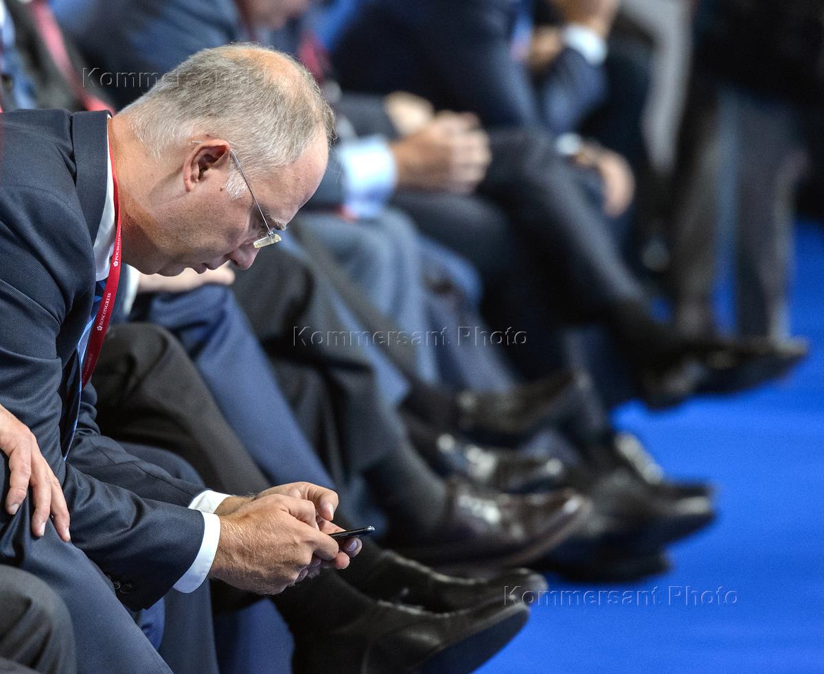 Первый Международный форум по энергоэффективности и развитию энергетики "Российская энергетическая неделя" в Центральном Манеже. Председатель совета директоров ОАО "Стальная группа Мечел" Игорь Зюзин во время форума.